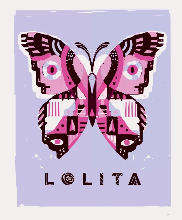 For this annual charity poster show, selected artists were asked to create artwork that brings a favourite book to life. I chose Vladimir Nabokov’s Lolita because I wanted to visually capture the complexity of a love story centred around eroticized youth. Nabokov often likened Lolita to a butterfly, seeing both as tender, dreamy and vulgar. In this piece I used the butterfly as a graphic container to hide stereotypically cute imagery that has been subtly sexualized, as well as portraits of both Humbert Humbert and Lolita.